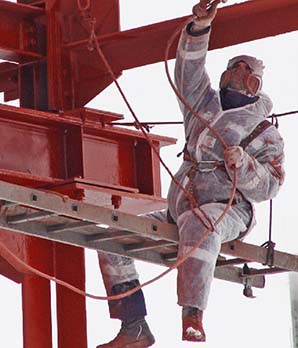 Привлечение промышленных альпинистов в окрашивании эстакад